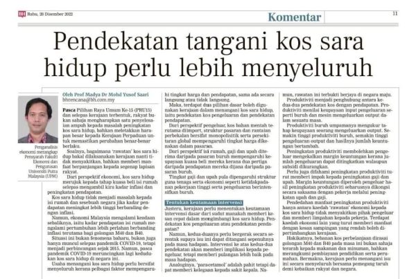 SHAH ALAM - Pakar ekonomi menyenaraikan 10 langkah penting yang perlu dipandang serius oleh kerajaan bagi menangani kos sara hidup…